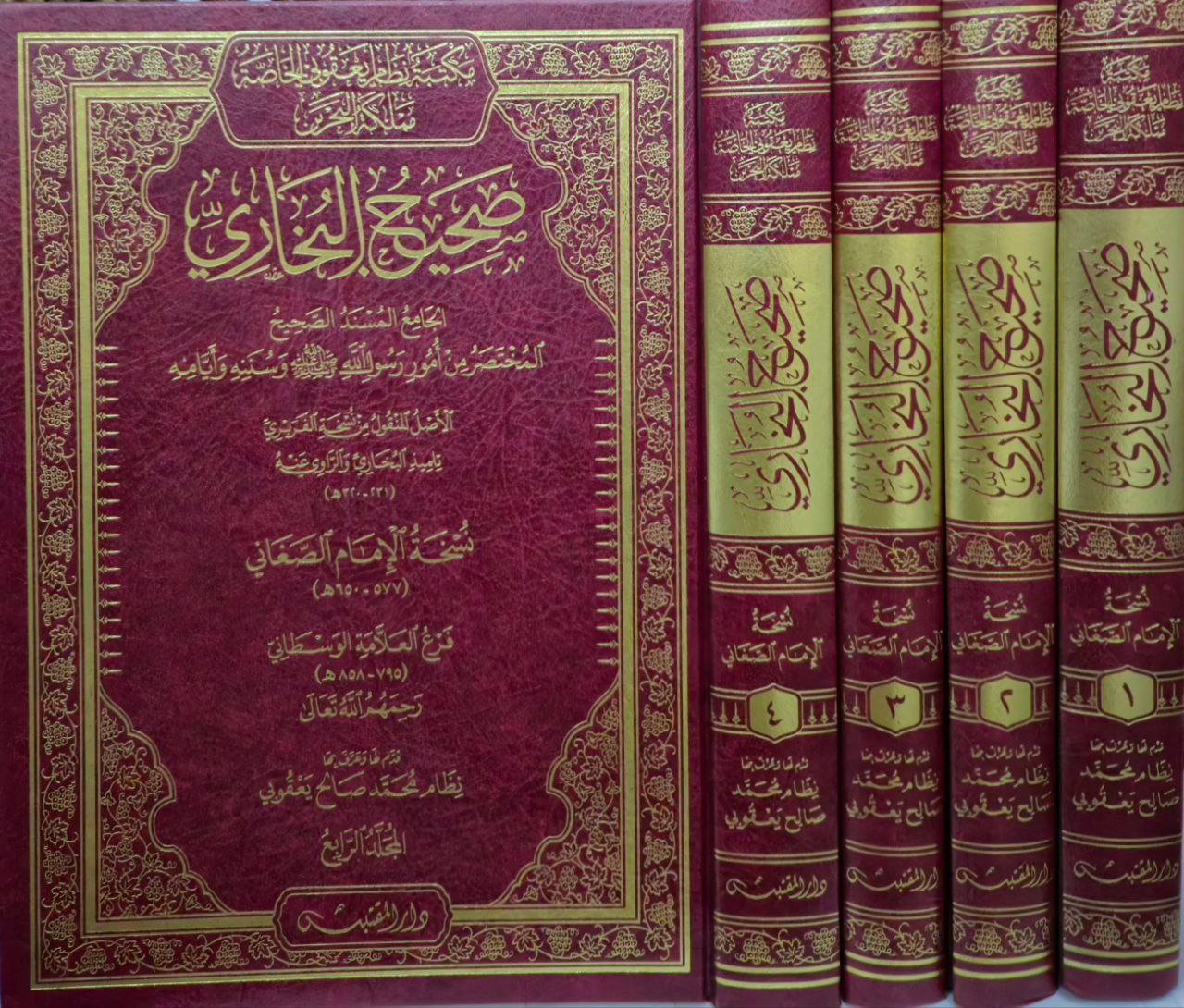 صحيح البخاري (الجامع المسند الصحيح المختصر من أمور رسول الله صلى الله عليه وسلم وسننه وأيامه) الأصل المنقول من نسخة الفربري نسخة الإمام الصنعاني \ 4 مجلدات قطع كبير